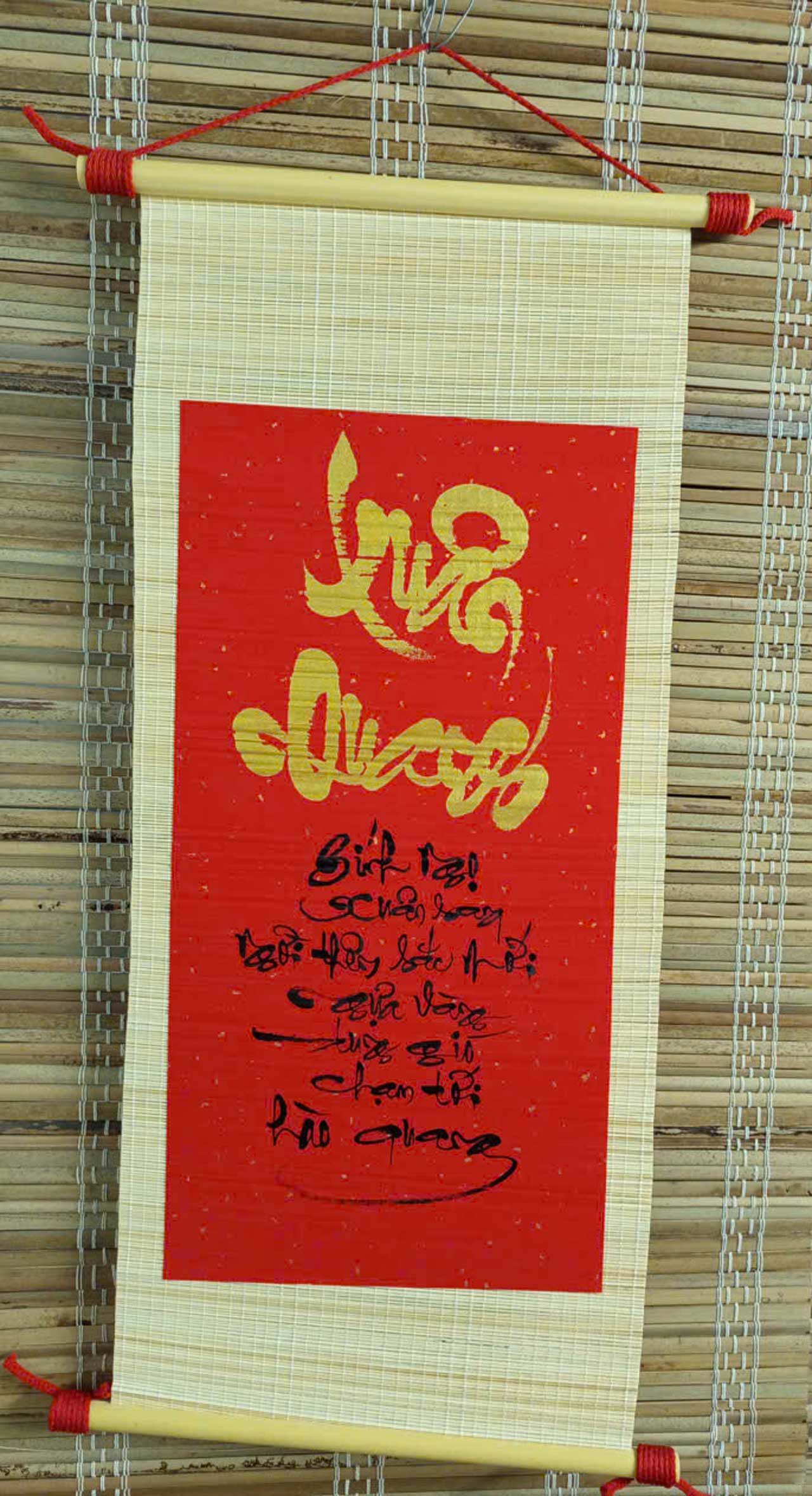 Liễn mành tre viết thư pháp – Quà Tết mang đậm nét nghệ thuật truyền thống Việt. Thích hợp làm quà tặng Sếp;Tặng đối tác; Tặng khách VIP; Tặng tân gia, khai trương; Quà Chúc Tết gia đình.