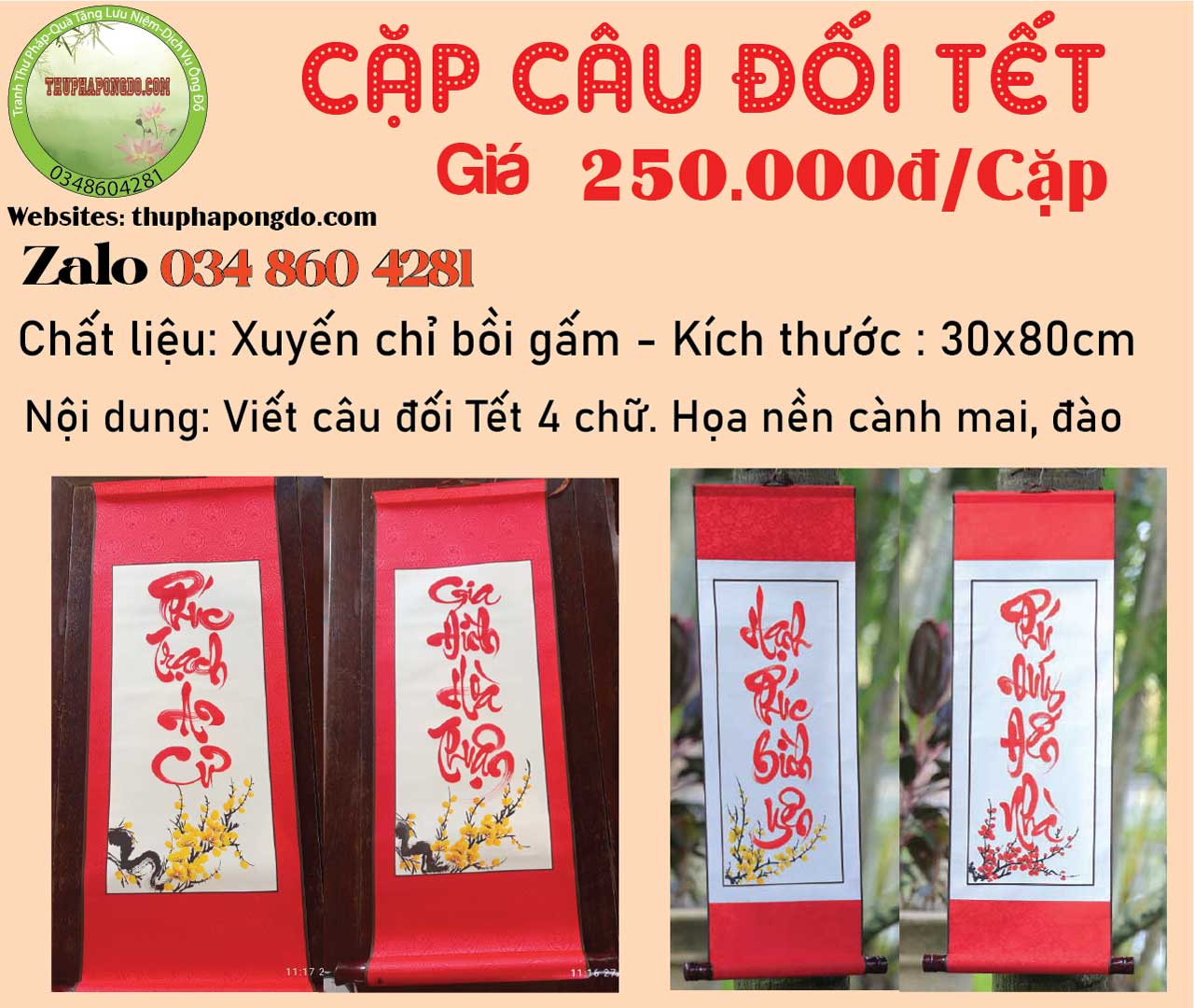 30x70cm | 240k/cặp | Cặp câu đối 4 chữ |