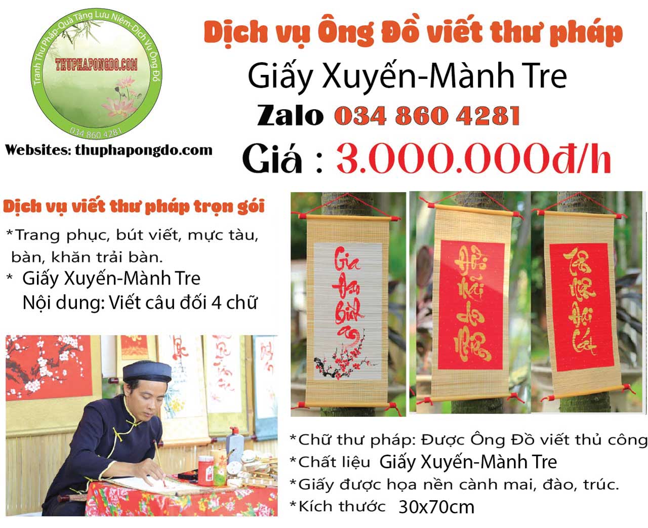 - Ông Đồ Viết chữ thư pháp bằng mực tàu hoặc acrylic cao cấp.