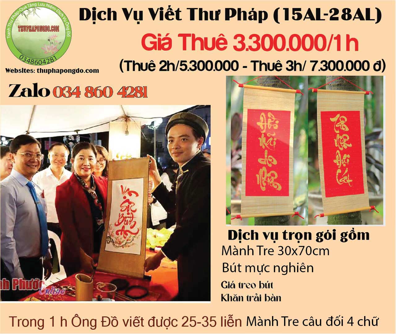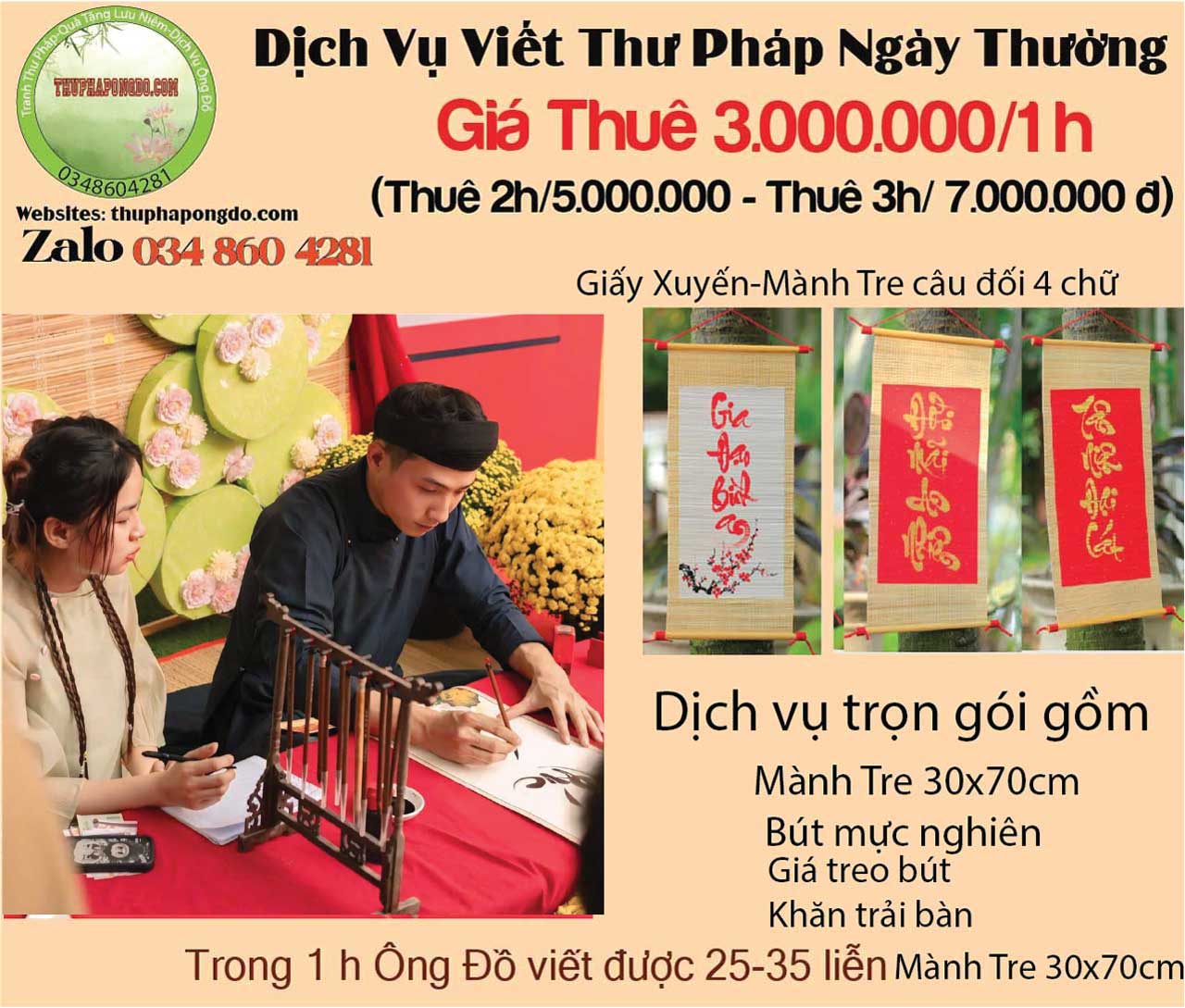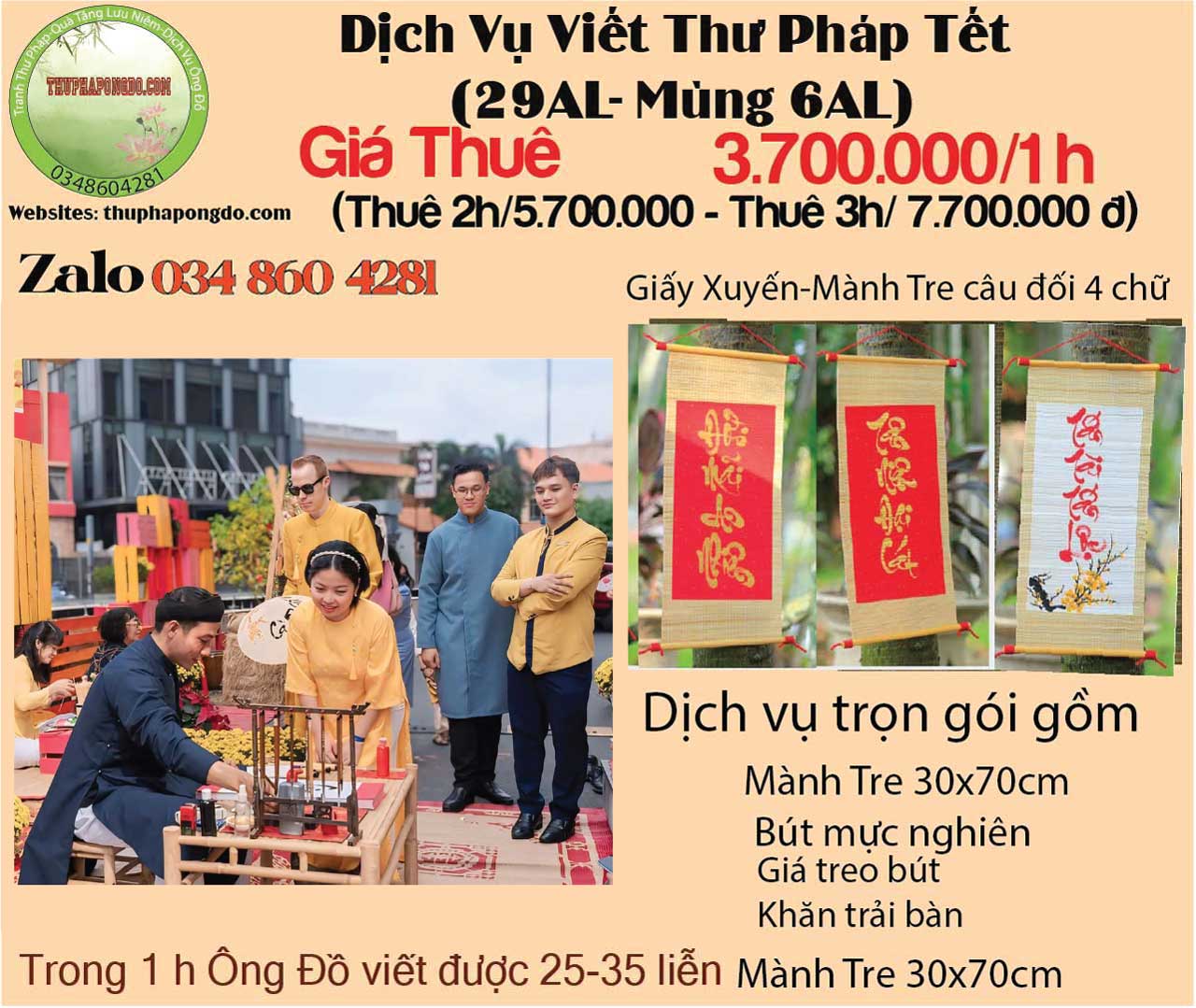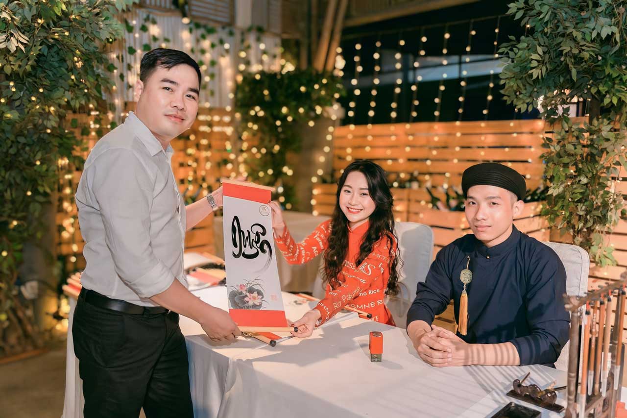 Giá ông đồ biểu diễn viết liễn mành tre thư pháp Year End Party