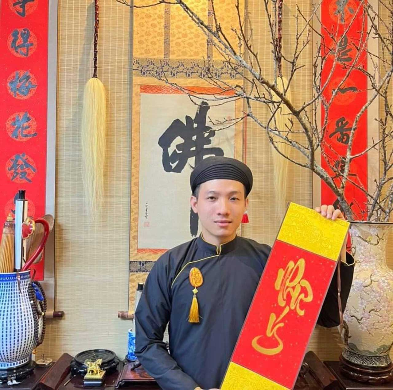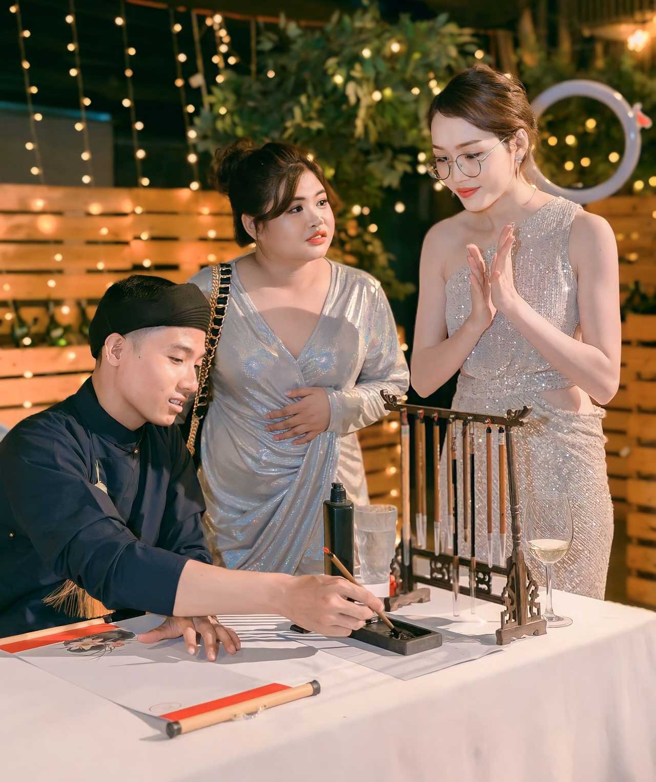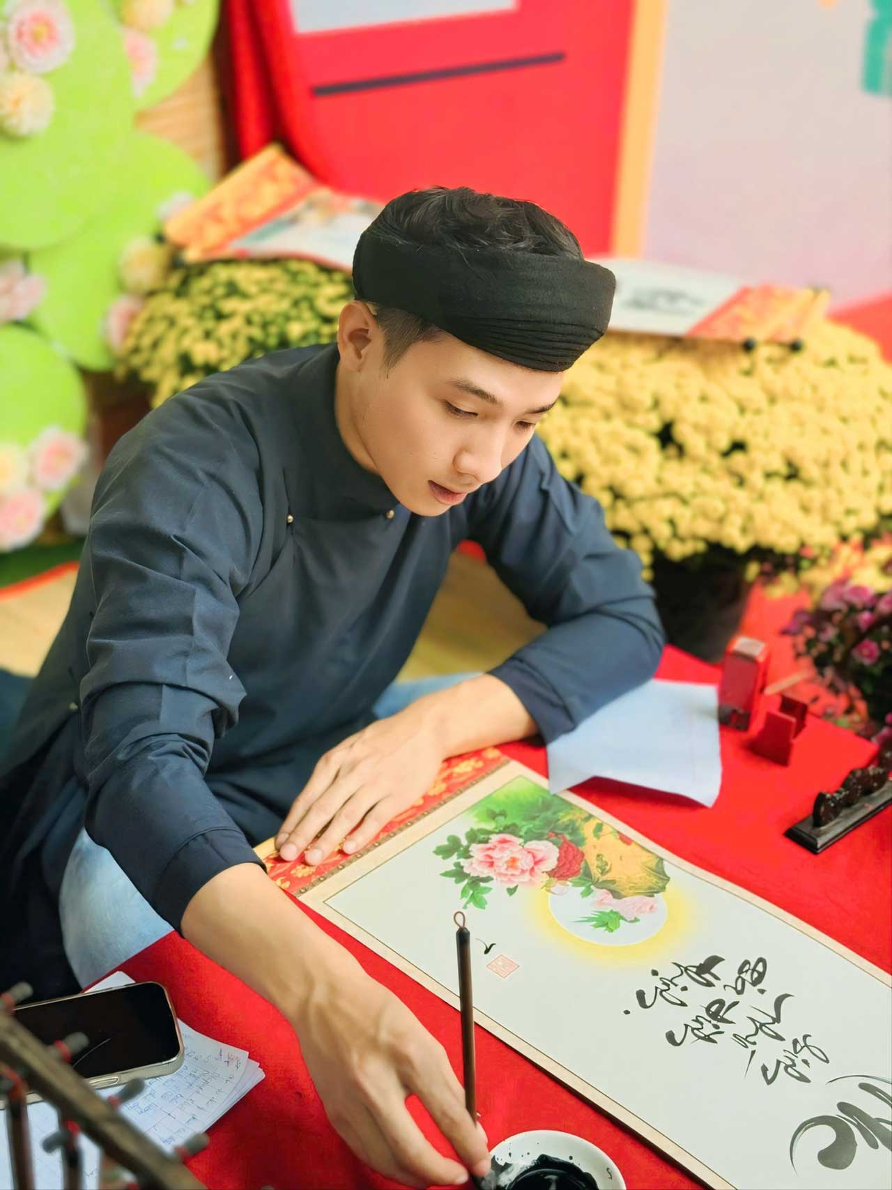Giá ông đồ biểu diễn viết liễn mành tre thư pháp Year End Party