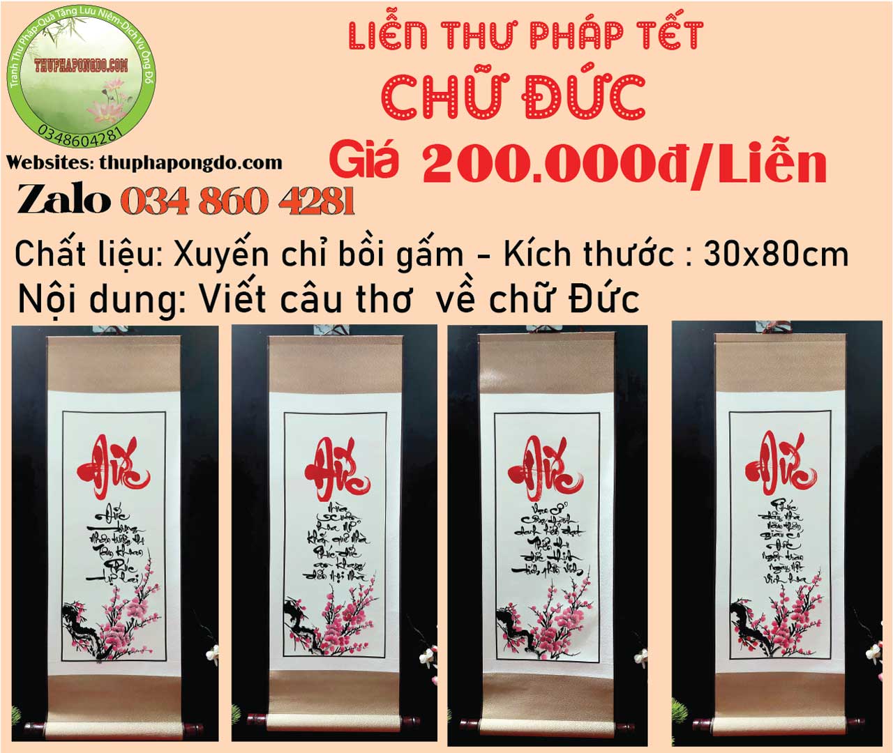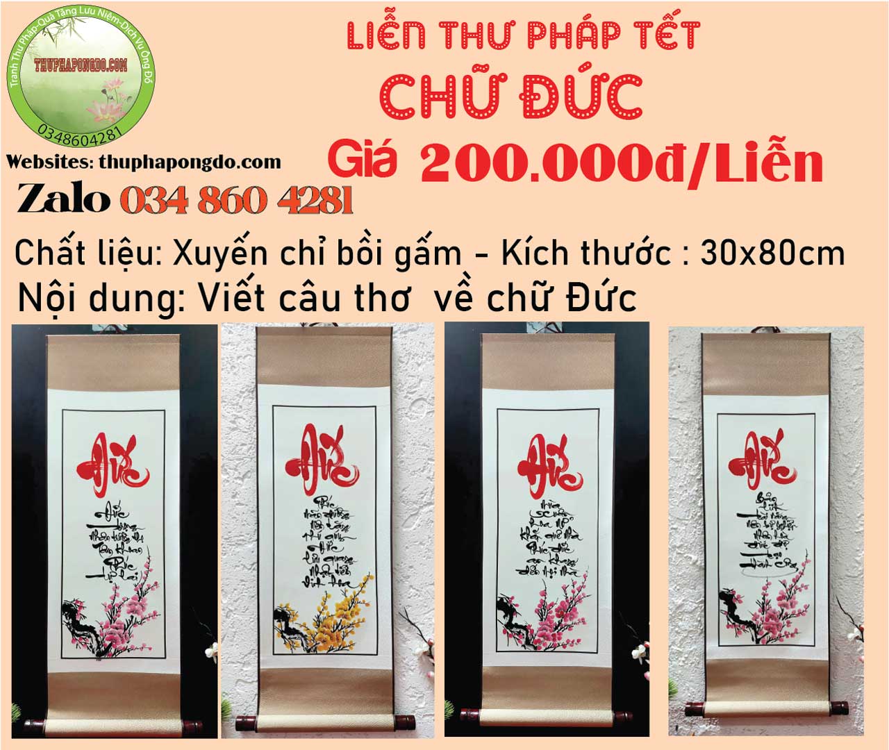 Các tác phẩm liễn chữ Đức trên được chúng tôi khắc họa qua những lời thơ, lời văn rất ý nghĩa và súc tích. Và được thực hiện qua những đường nét Thư pháp rất điêu luyện từ những ông đồ trẻ đầy đam mê và nhiệt huyết.