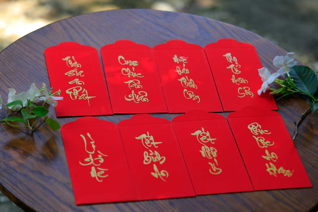 Mẫu Câu đối Thư pháp Tết trên bao lì xì