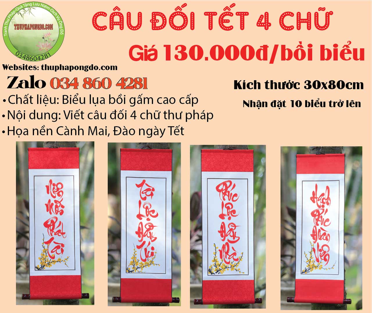 Trên là một số mẫu câu đối tết 4 chữ. Quý khách có nhu cầu tìm mua có thể liên hệ với chúng tôi.