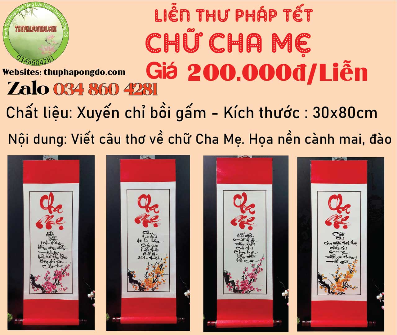 Xem thêm liễn thư pháp về chữ Cha Mẹ tại: https://thuphapongdo.com/san-pham/thu-phap-chu-cha-me/