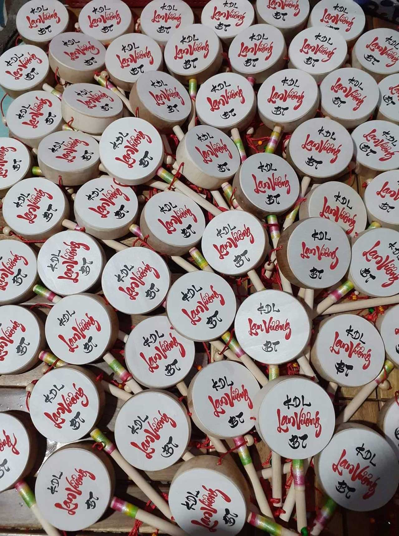 Hình ảnh quà lưu niệm trống lắc viết thư pháp